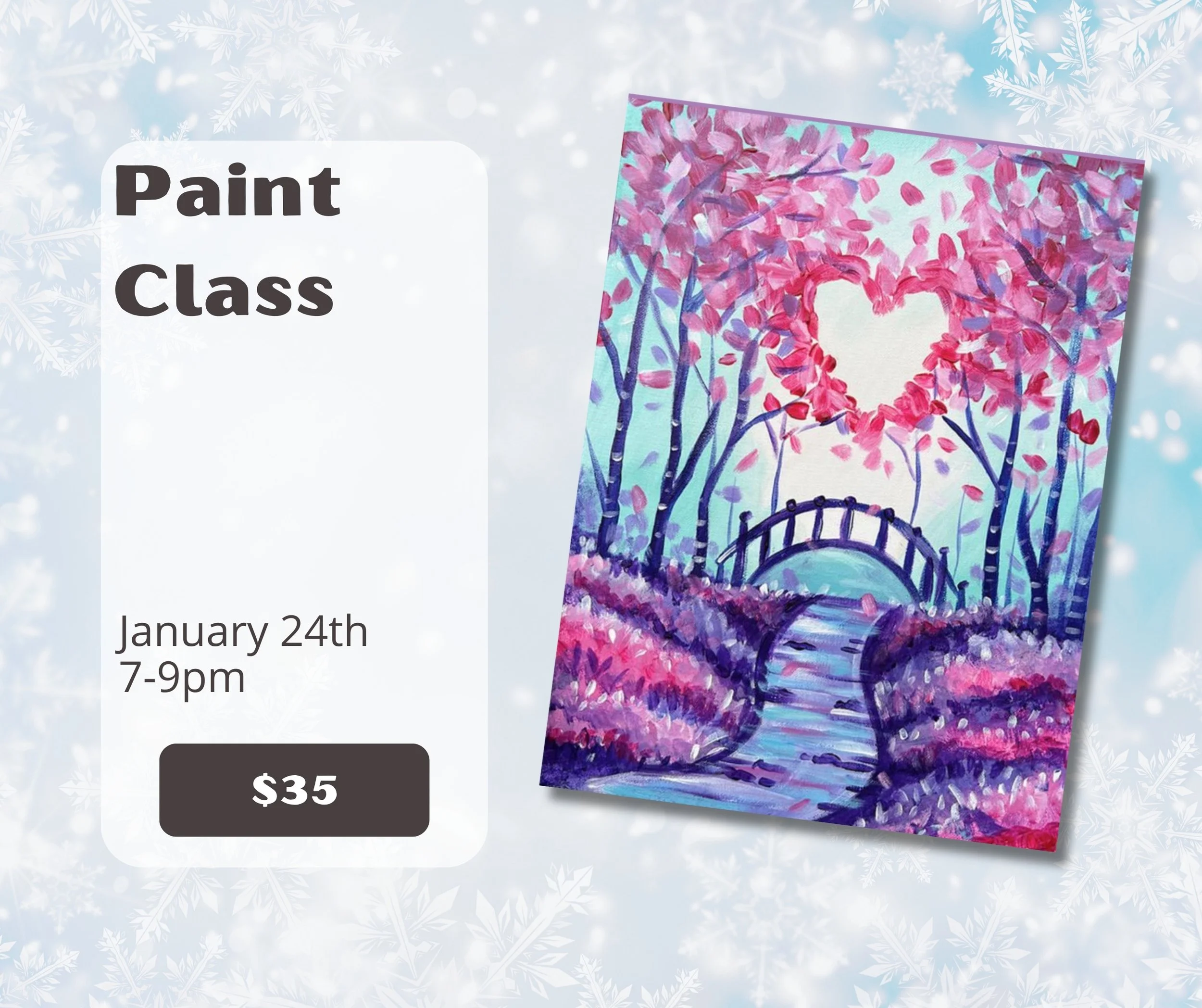 Join our fun-filled art class with instructor Alicia as she guides you step-by-step in creating your masterpiece on a 16x20 canvas! This class is designed to be enjoyable and accessible for everyone!